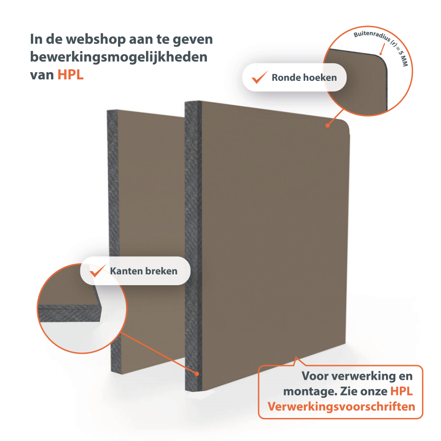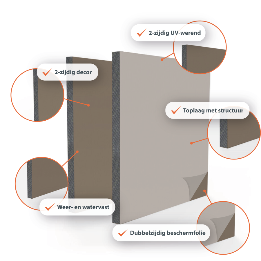 HPL bouwplaten voor exterieurtoepassingen zijn robuust, weersbestendig en kleurvast. Verkrijgbaar in 38 RAL-kleuren en dubbelzijdig decor, ideaal voor gevelbekleding, bekleding van balkons en technische buitenconstructies.