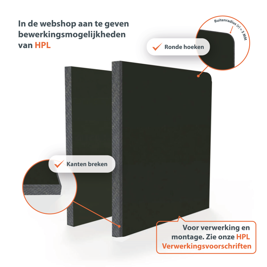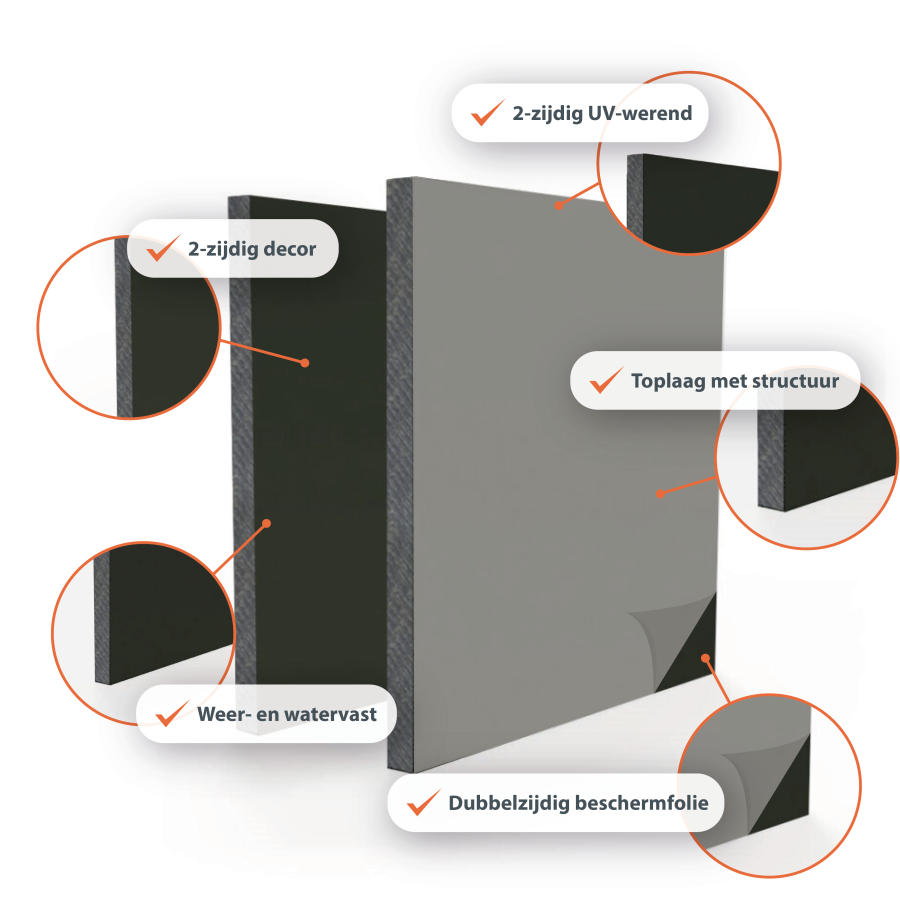 HPL bouwplaten voor exterieurtoepassingen zijn robuust, weersbestendig en kleurvast. Verkrijgbaar in 38 RAL-kleuren en dubbelzijdig decor, ideaal voor gevelbekleding, bekleding van balkons en technische buitenconstructies.