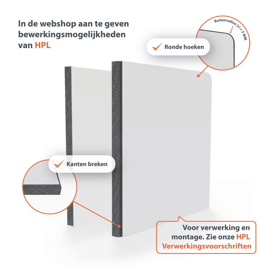 HPL bouwplaten voor exterieurtoepassingen zijn robuust, weersbestendig en kleurvast. Verkrijgbaar in 38 RAL-kleuren en dubbelzijdig decor, ideaal voor gevelbekleding, bekleding van balkons en technische buitenconstructies.