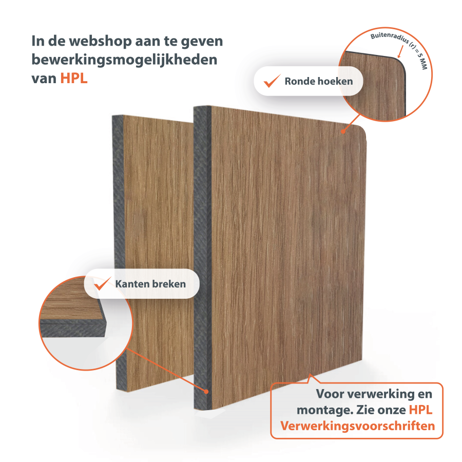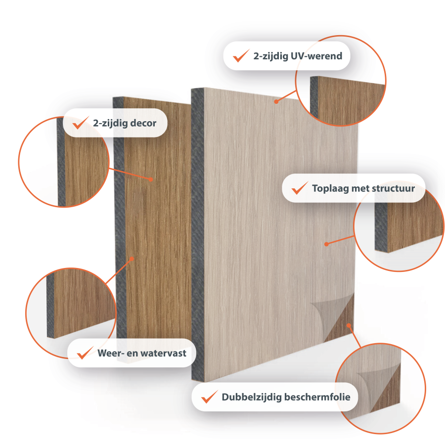 HPL bouwplaten voor exterieurtoepassingen zijn robuust, weersbestendig en kleurvast. Verkrijgbaar in 38 RAL-kleuren en dubbelzijdig decor, ideaal voor gevelbekleding, bekleding van balkons en technische buitenconstructies. Let op! Houdt rekening met de houtnerf richting bij het ingeven van uw maten! Langste maat loopt met de structuur mee!